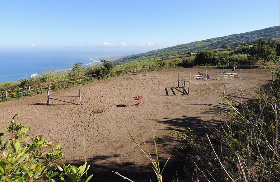 Un club house pour se reposer ou se rafraîchir après une reprise, un rond de longe pour travailler les chevaux en liberté, une carrière avec une vue spectaculaire sur l'océan, une écurie pouvant accueillir les chevaux au box, une douche, et plusieurs hectares de pâturages...